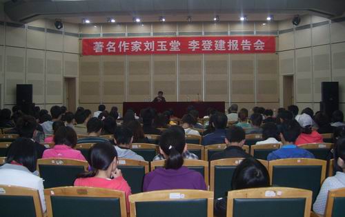 “深入群众生活,为人民大众写作。”5月13日,山东省作协原副主席、著名作家刘玉堂,山东省散文学会副会长、著名散文家李登建来校作报告,受到听众的热烈欢迎。