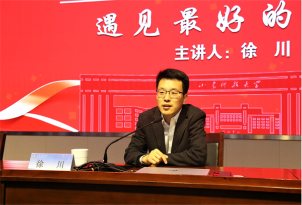 徐川以“专业学习”、“学生干部”、“兴趣爱好”及“考研就业”等关键词为切入点,与同学们探讨了学习和生活中遇到的困难与挫折。他结合自身成长经历,用生动幽默、贴近实际的语言阐明了人生的感悟与思考,对大学生在人生道路的关键节点上做出正确选择提供了思想启迪和实践指导。徐川指出,青年学生要珍惜时光,抓住机会培养兴趣爱好,提升自己的能力;要分析自我,明确就业方向,制定好自己的职业生涯规划;要勇于尝试和体验,慢慢积攒“积木”,为自己的人生拼出更美好的“拼图”,进而在未来遇见更好的自己。