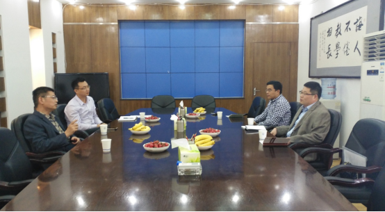 4月14日,学校合作发展处副处长薛力一行到山东财经大学开展交流工作,山东财经大学校友办主任耿金波、副主任徐超接待了薛力一行。