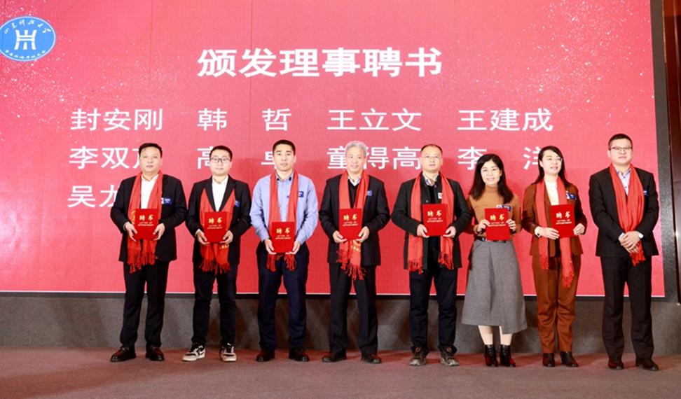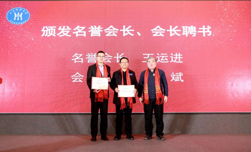 姚庆国为名誉会长、会长颁发聘书,诸葛福民为顾问代表颁发聘书,王晓东为副会长、秘书长颁发聘书,新任会长郭斌为理事颁发聘书。在校友们的共同见证下,第二届校友会会长王运进将会旗交接到新任会长郭斌手中。