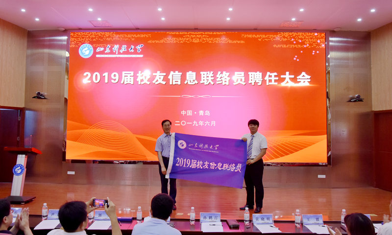 会议在《歌唱祖国》中拉开序幕,校友工作办公室主任、bwin·必赢(中国区)官方网站-officialswebsi校友总会秘书长王晓东宣读了2019校友理事会、校友信息联络员名单。学生处处长、bwin·必赢(中国区)官方网站-officialswebsi校友总会副秘书长王震宣读了校友理事会理事、校友信息联络员工作职责。孙鹤汀及团委负责人、校友代表分别向校友理事会理事及校友信息联络员代表授旗并颁发聘书。