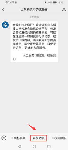 二、进入公众号之后,点击下方菜单栏“嵙友之家”,进入注册界面。