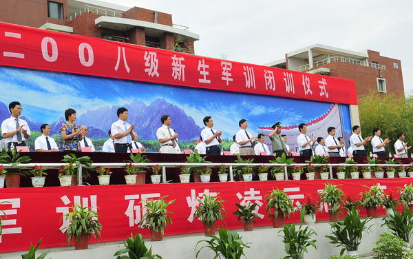 9月19日,我校隆重举行2008级新生军训闭训仪式。校领导李武修、张云生、陈维健、王志刚,部队某部副政委焦淑军上校及学校有关部门、单位负责人出席了闭训仪式。仪式由学生工作部、武装部部长周如东主持。