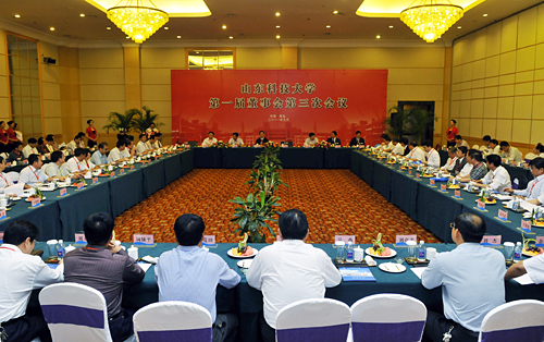 副董事长、副校长张士强作董事会工作报告,报告回顾了一届二次会议以来董事会各项工作:报告期内,学校董事会各成员坚持“双向参与,资源共享,互利共赢,共谋发展”的宗旨,认真履行董事会章程所规定的权利和义务,联系更加紧密,合作更加广泛,“优势互补、双向受益、携手共进”的良好预期得到实现。董事单位已从最初的71家发展为77家。组织建设得到加强,社会力量得以凝聚;提升创新能力,拓展科技合作领域;深化人才培养合作,助力董事单位持续发展;发挥桥梁纽带作用,促进沟通交流;汇集社会资源,筹措办学资金。