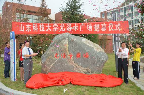 揭牌项目具体为碧生源控股有限公司捐建的静思园,泰安市兴建钢铁有限公司捐建的校名石,新汶矿业集团有限责任公司捐建的若水园,山东省尤洛卡自动化装备股份有限公司捐建的尤洛卡广场,日照山海天城建集团捐建的山海会羽毛球馆,冀中能源集团有限责任公司捐建的地球科学馆,临沂市人民政府捐建的费县石,费县人民政府捐建的费县石,山东明瑞化工集团公司捐建的泰山石,神华宁夏煤业集团有限责任公司捐建的晨读园,神州数码(中国)有限公司捐赠的多媒体设备,上海中兴通信设备有限公司捐赠的矿山物联网实验室设备,山东蓝光软件公司捐建的蓝光报告厅,山东鲁泰煤业有限公司捐建的科技之源主题雕塑和北京启迪时代科技有限公司捐建的运动控制系统实验室。(责编:颜凤)