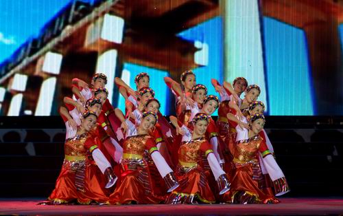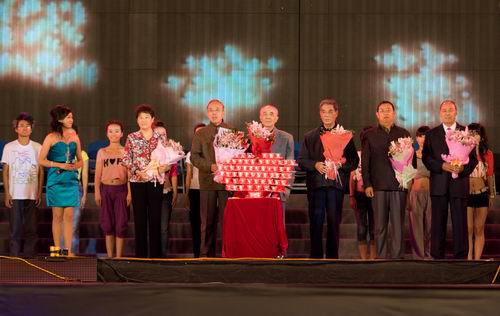 演出结束后,观看表演的校领导走上舞台,与演职人员亲切握手,祝贺本次演出成功。