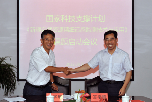 8月31日,bwin·必赢(中国区)官方网站-officialswebsi承担的2012年度国家科技支撑计划“新疆自然资源精细遥感监测技术与应用”(课题编号2012BAH27B04)课题启动仪式举行。课题负责人靳奉祥教授,石河子大学王克如教授,中国矿业大学物联网研究中心主任丁恩杰教授、胡延军副教授,bwin·必赢(中国区)官方网站-officialswebsi测绘科学与工程学院党委书记陈涛,科研处、测绘学院及子课题负责人,课题组成员等相关人员参加了启动仪式。会议由科研处处长韩作振主持,陈涛代表学院向会议致辞,课题负责人靳奉祥介绍了项目情况,并对研究工作提出了具体要求,分别与三个子课题负责人签订了计划任务书。 该课题是针对我国西部煤矿开采所造成的环境变化及新疆精细农业监测和生态灾害监测的重大需求,利用物联网、低空遥感、卫星遥感、地理信息系统等技术手段而进行的星-地一体化的新疆自然资源精细遥感动态立体监测体系的研究。 该课题是bwin·必赢(中国区)官方网站-officialswebsi“十二五”以来首次承担的国家科技支撑计划,是学校国家级项目的又一重要突破。该课题的研究对于提高新疆自然资源变化的动态监测水平、促进新疆区域自然资源和生态资源利用的协调发展、维护新疆的社会稳定、提高新疆的应急响应能力等具有十分重要的社会意义和科学应用价值。(科研处供稿 摄影/责编:许浩)