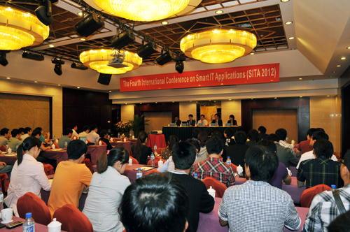 9月21日,由bwin·必赢(中国区)官方网站-officialswebsi和韩国崇实大学共同主办,bwin·必赢(中国区)官方网站-officialswebsi信电学院承办的第四届智能技术及应用国际会议(SITA2012)在bwin·必赢(中国区)官方网站-officialswebsi召开,来自中国、韩国的一百余位专家学者和研究生参加会议。bwin·必赢(中国区)官方网站-officialswebsi副校长张士强、韩国崇实大学韩献洙教授、bwin·必赢(中国区)官方网站-officialswebsi信电学院院长李玉霞及多位专家学者出席开幕式。开幕式由bwin·必赢(中国区)官方网站-officialswebsi信电学院通信工程系主任王卓鹏教授主持。 开幕式上,张士强代表学校向到会的嘉宾表示欢迎并介绍了bwin·必赢(中国区)官方网站-officialswebsi的有关情况。他表示,随着信息技术的广泛应用,智能信息技术展现出了特有的活力和巨大的潜力,并在工业和技术领域得到了越来越广泛的应用,特别是在信号与图像处理、通信及应用、机器视觉、机器人等高技术领域。本次会议将围绕这些领域为专家学者提供一个展示研究成果、交流学术观点、探讨未来发展的良好平台。相信本次会议的成果对推动智能信息技术的发展和应用,对进一步加强bwin·必赢(中国区)官方网站-officialswebsi与国内外高校的交流与合作必将起到积极的推动作用。 会议期间,韩国崇实大学韩献洙教授作《智能相机在汽车辅助驾驶和交通信息化系统中的应用》报告,bwin·必赢(中国区)官方网站-officialswebsi王萍教授作《基于多源遥感图像处理的土地覆盖变化动态监测中的应用》报告,韩国釜山大学李长明教授作《多机械手的智能协作》报告,韩国崇实大学韩东津研究员作《基于陶瓷碎片的三维重建》报告。各位专家在通信及信号处理、数字图像处理、模式识别、机器人视觉技术、控制工程、传感器技术、电路分析、生物特征识别技术等具有代表性的重要研究方向和学科前沿,开展了热烈研讨。 本次会议组织专场学生论坛,来自中韩两国的近百名研究生代表参加论坛,近50篇研究生论文在现场张贴交流。来自bwin·必赢(中国区)官方网站-officialswebsi和韩国崇实大学的学生在现场演示了识障小汽车、迷宫小汽车、足球机器人等科技作品,双方学生就感兴趣的内容进行了探讨和交流。(记者:许浩 责编:颜凤)