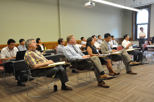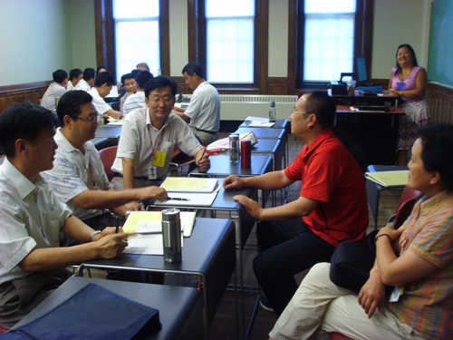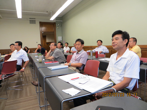 培训期间,所有成员分4个小组进行了专题研讨。培训结束前,韩作振、李光禄、耿献文、亓学广代表各小组分别做了美国高校人力资源管理模式及启示,高校资金募集与分配——借鉴、反思与建议,美国高等教育的主要特点及其启示——定位、管理与认证,浅谈高等教育国际化专题汇报演讲。