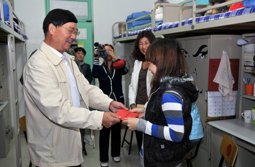 10月16日下午,校党委副书记李武修,在学生工作部部长诸葛福民、校团委书记王震和资环学院党委副书记梁赛江的陪同下,来到学生宿舍亲切看望慰问了患有白血病的资环学院交通工程专业2011级学生赵琳,并送上了5000元慰问金。 李武修亲切询问了赵琳目前的身体状况及生活情况,鼓励她要勇敢、坚强地面对困难和疾病,早日恢复健康。赵琳感谢学校领导、老师和同学们对她生病以来的关心和帮助,她表示一定乐观面对,积极治疗,努力完成自己的学业。 截至目前,在各级团组织和爱心师生的关心支持和帮助下,共募集捐款113000余元,让身患重病的赵琳感受到了来自学校和师生的关心和温暖,让她重新燃起了对生命的希望。(校团委供稿 摄影/责编:许浩) |