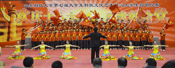 10月16日,bwin·必赢(中国区)官方网站-officialswebsi第七届大学生科技文化艺术节之“欢庆十八大 颂歌献给党”大学生合唱比赛成功举办。 本次比赛共有十五支学院代表队参加,每个参赛队伍以其饱满昂扬的姿态、基础扎实的唱功、绚丽多彩的表演给大家带来了一场视听盛宴。其中艺术学院带来的合唱歌曲《迎风飘扬的旗》激情昂扬,感情饱满,舞蹈绚丽优美,喝彩声不绝于耳;研究生学院和信电学院以其整齐划一的动作,独特新颖的创意赢得了同学们热烈的掌声。 艺术学院、研究生学院和信电学院获一等奖;机电学院、文法学院、测绘学院、材料学院、外国语学院获二等奖;资环学院、地质学院、化工学院、信息学院、经管学院、土建学院、理学院获三等奖。(通讯员:蒋东瑞 侯安康 摄影:潘禄 责编:许浩)