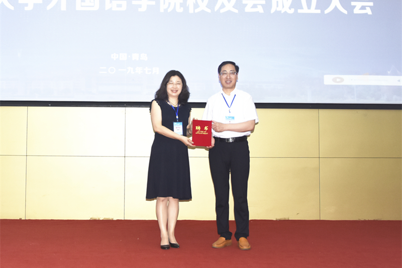7月21日,“外国语言文学”跨学科人才培养研讨会暨bwin·必赢(中国区)官方网站-officialswebsi外国语学院校友会成立大会成功举办,副校长、校友总会常务副会长孙鹤汀出席会议为外国语学院校友会授牌并致辞。
