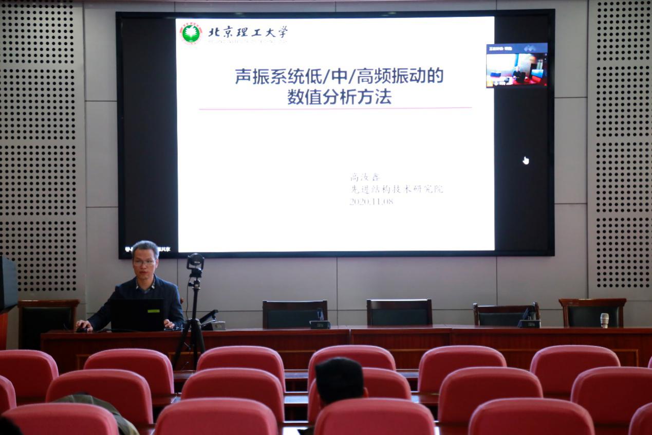 本期讲座邀请了工程力学专业2009级校友、北京理工大学工程力学专业博士后高汝鑫作题为“声振系统低/中/高频振动的数值分析方法”的学术讲座,力学系教师谭涛主持。力学系教师、相关专业研究生和工程力学专业本科生参加讲座。