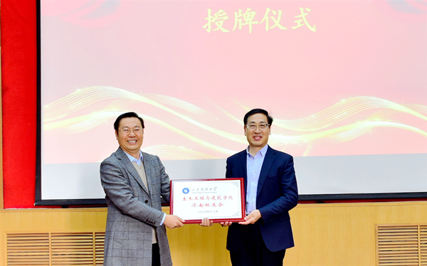 孙鹤汀向土建学院济南校友会授牌