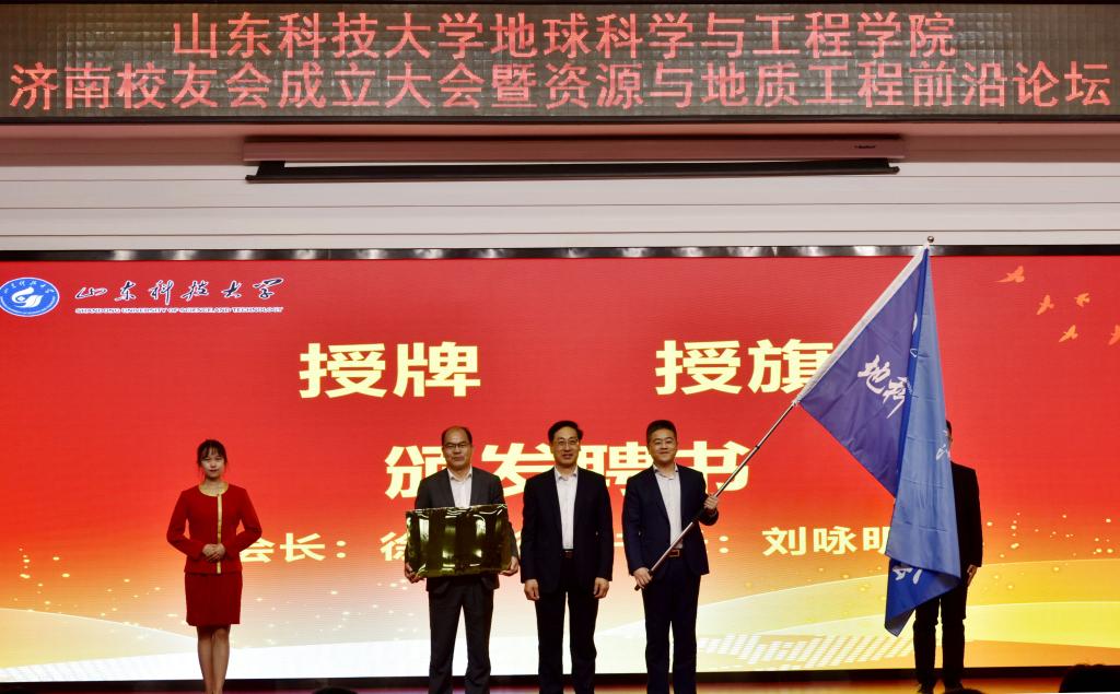 孙鹤汀为地科学院济南校友会授牌、授旗