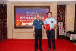 孙鹤汀向土建学院济宁校友会授旗
