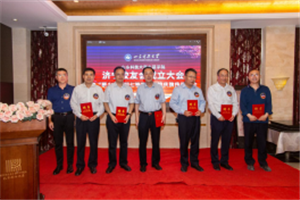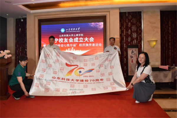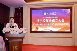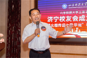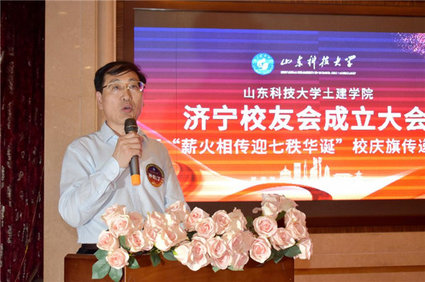 孙鹤汀代表学校对土建学院济宁校友会的成立表示热烈祝贺,他回顾了学校与校友工作的发展历史,与校友们分享了学校近年来取得的成绩和“一家人一家亲,守望相助,共荣共进”的校友工作理念,他强调,校友会是联系学校和校友的情感纽带和交流平台,希望校友会建成加强联系,促进交流,增进友情,共享互助,促进校友事业发展,襄助母校事业发展的平台。他强调,母校70华诞是37万海内外校友共同的节日,校庆旗传递是校庆系列活动之一,校庆旗在山东省内各校友会及全球范围内各校友会进行接力传递。希望广大校友积极参与校庆活动,更好传承学校文化,凝聚校友力量,扩大社会影响,并诚邀广大校友回母校同襄盛会,畅叙友情。
