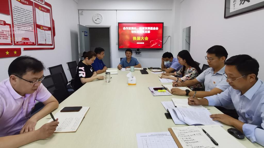 9月20日,合作发展处、教育发展基金会与校友会党支部在行政楼311会议室举行换届选举大会,会议由上届支部书记王晓东同志主持,全体党员参会。