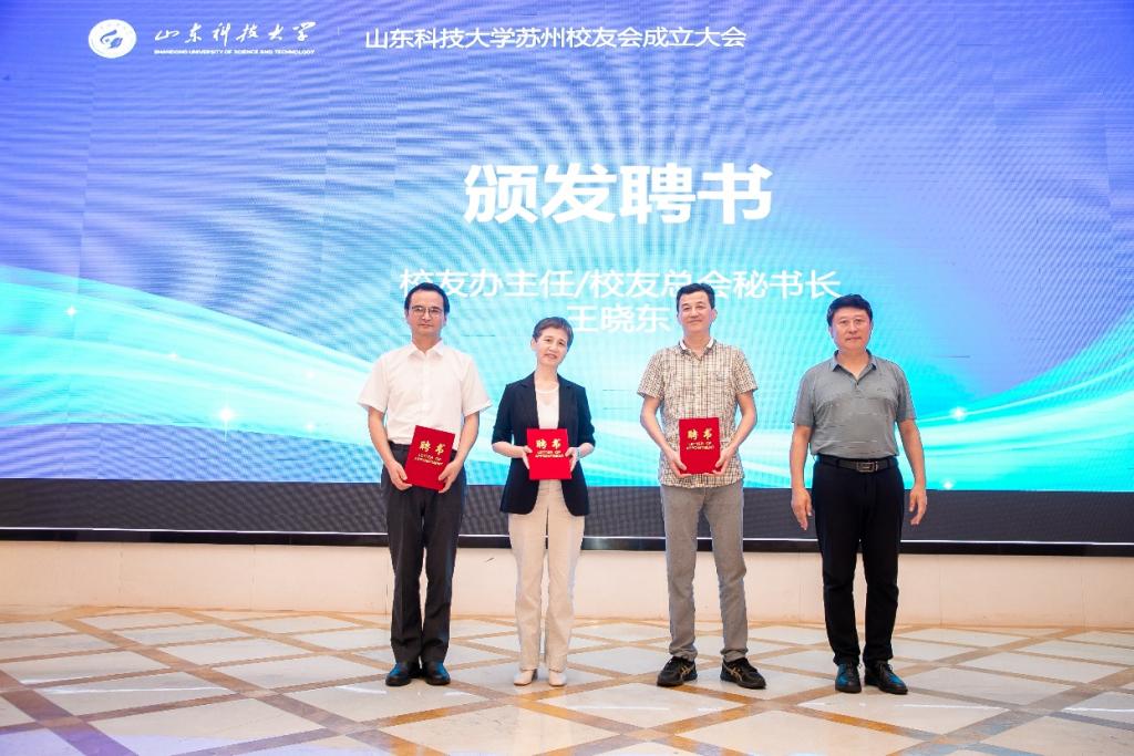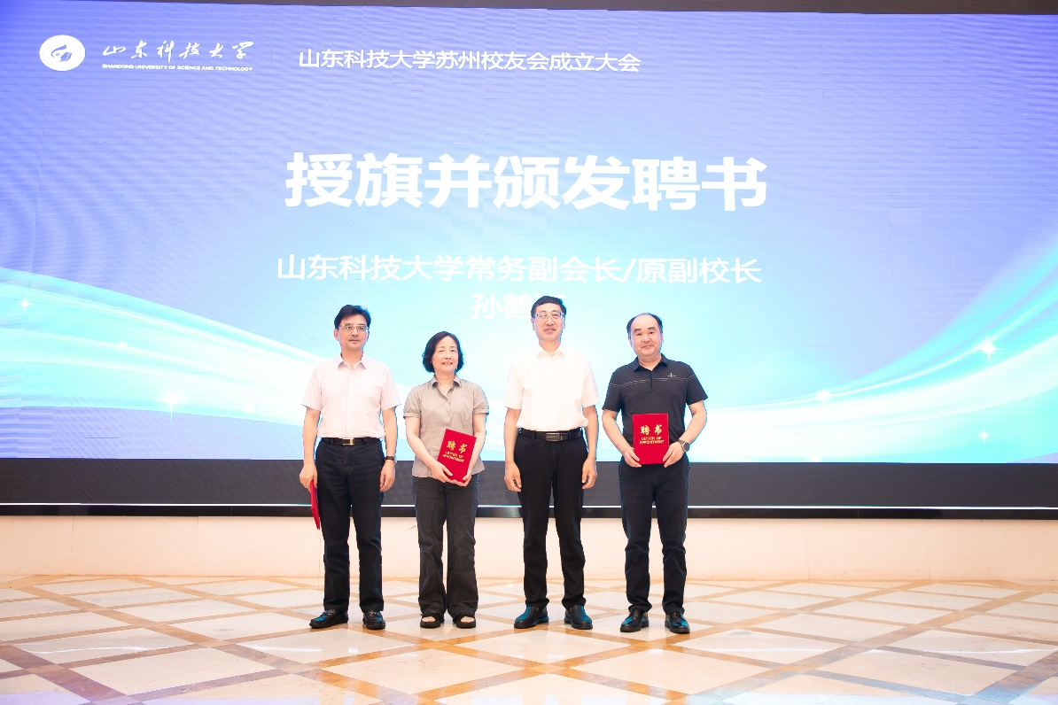 孙鹤汀为苏州、无锡校友会授会旗,为当选名誉会长、会长颁发聘书,王晓东为顾问颁发聘书,新当选苏州校友会会长包继华、无锡校友会会长余根祥分别为苏州和无锡校友会副会长、秘书长、副秘书长颁发聘书。包继华、余根祥进行发言,表示将凝聚校友力量,将校友会建设好、发展好。