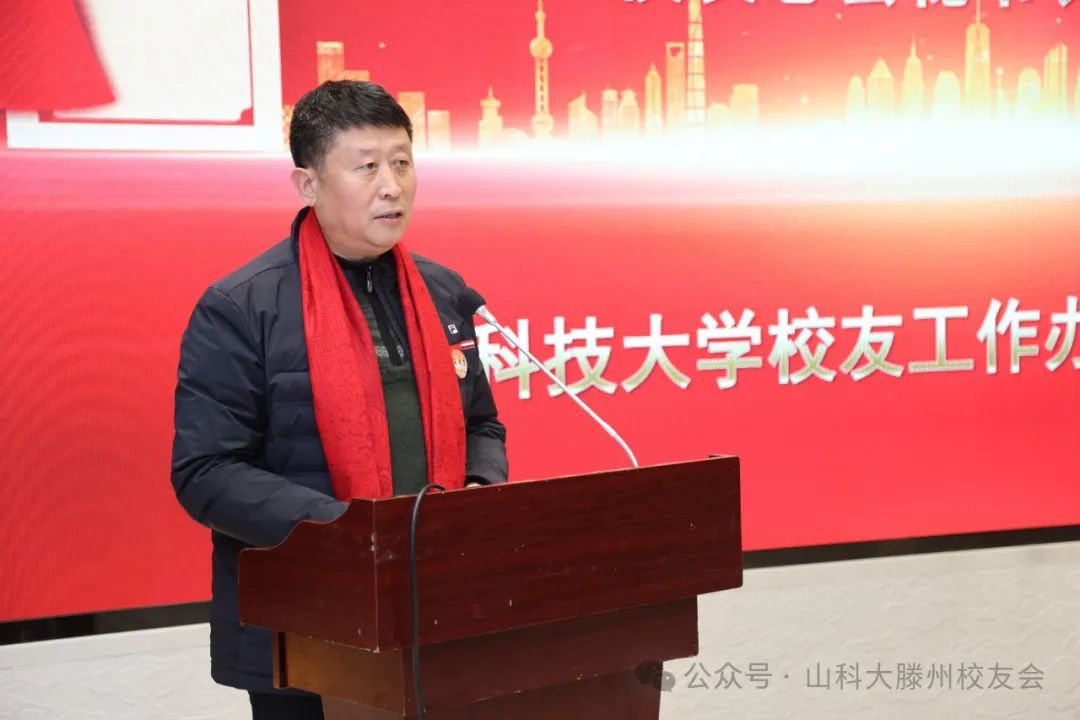 王晓东对校友们长期以来对母校和学校发展的倾情付出与鼎力支持表示感谢。他介绍了学校近年来的发展状况以及过去一年学校校友工作的开展情况。他表示新的一年是新的起点,希望滕州校友会继续发挥校友会公益性服务平台的优势,搭建好沟通服务的平台,发挥桥梁纽带作用,促进校友之间相互发展,共同进步,更好地凝聚校友力量,传播科大文化,传承科大精神,助力母校发展。