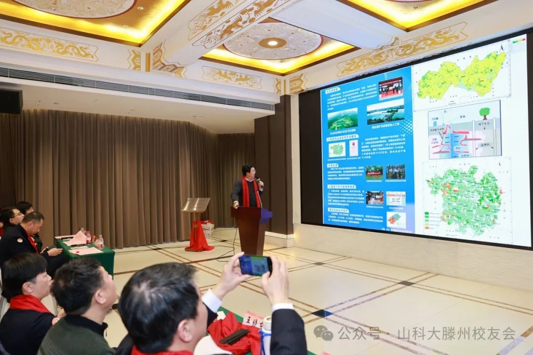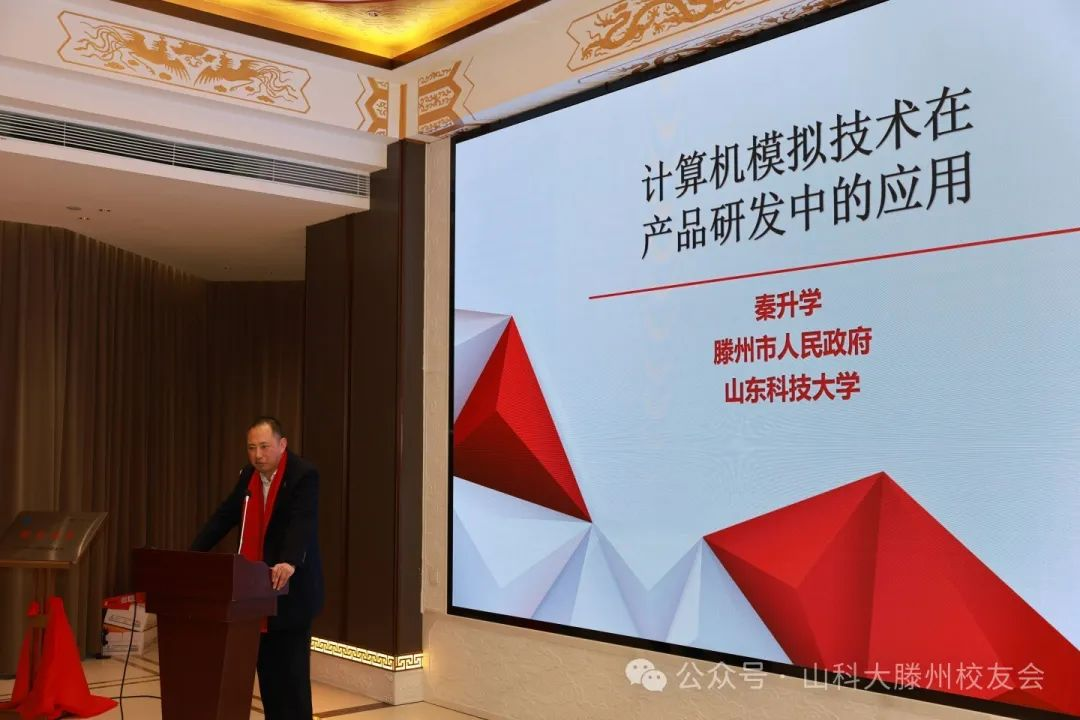在随后举办的高端论坛中, 滕州校友会名誉会长、滕州市副市长秦升学作题为《计算机模拟技术在产品研发中的应用》的学术报告,山东省煤田地质局第一勘探队碳中和副主任郑壮壮作题为《新时代地质+助力“双碳”目标实现的路径和优势》学术报告。(滕州校友会供稿)