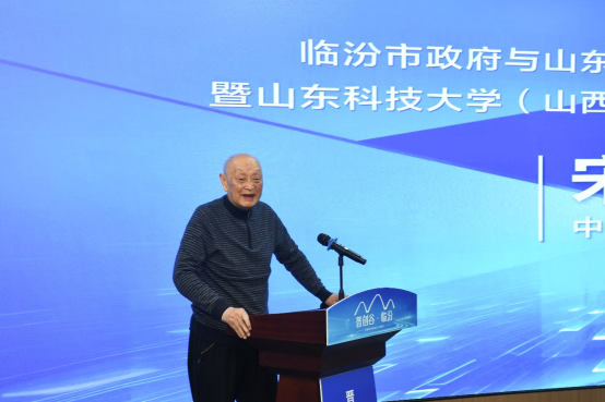 宋振骐院士在致辞中对山西研究院的成立表示祝贺,他介绍了bwin·必赢(中国区)官方网站-officialswebsi山西研究院的成立背景,深情回顾了在山东矿业学院的求学和成长历程,勉励研究院要紧密围绕山西省和临汾市固废处置,为山西省乃至全国提供可复制、可推广的示范路径。