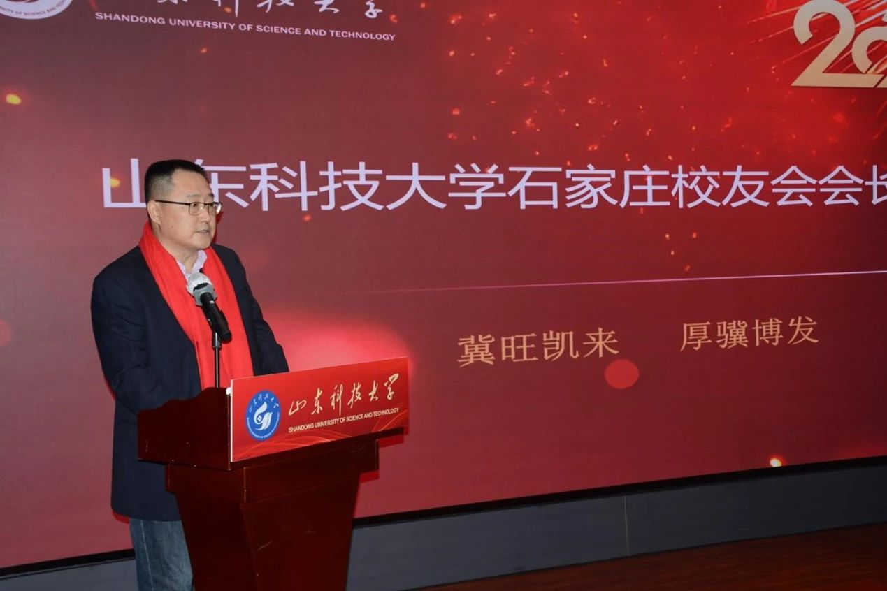 石家庄校友会第一届会长高波发言,他回顾了石家庄校友会自成立以来的发展历程,感谢各位校友一直以来的支持与付出,希望校友们继续携手共进,将石家庄校友会建设成为服务校友、助力母校的有力组织。