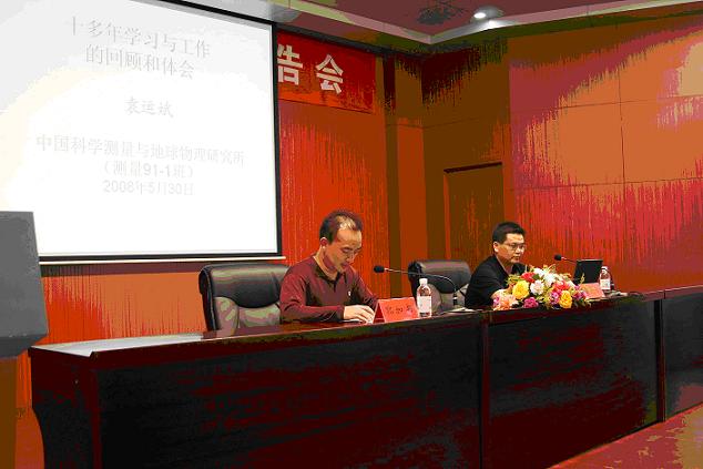 返回 2008年5月30日,中国科学院测量与地球物理研究所、我院测量91-1班校友袁运斌研究员为我院师生做了一场题为“十年多学习与工作的回顾和体会”的专题报告。本次报告会由测绘学院党委副书记郭加书主持,我院2006级、2007级共300余名学生聆听了报告会。