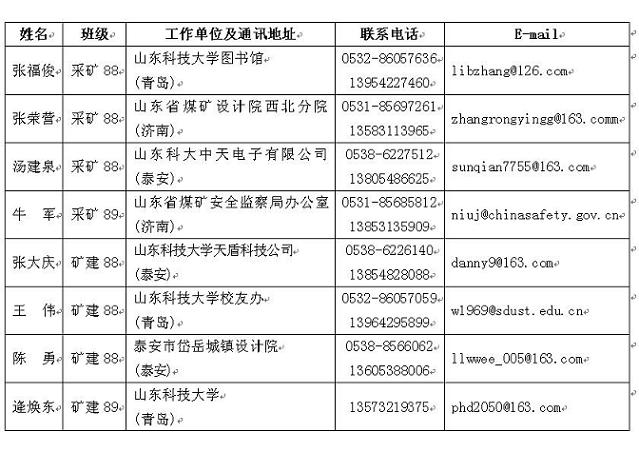 副主任 采矿88:高建广 苏同营 尹广成 矿建88:贾宏俊