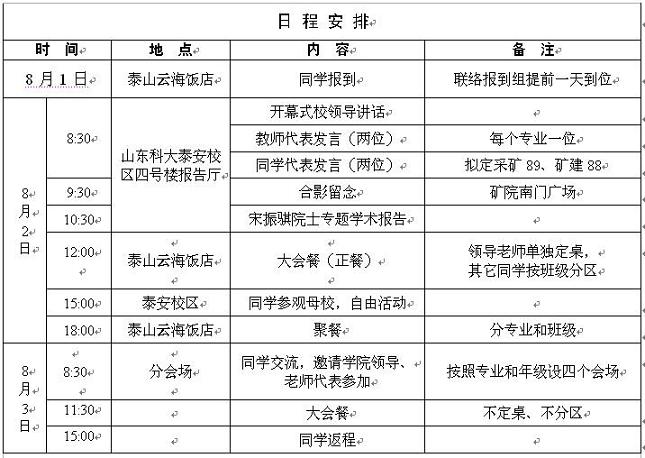 “珍惜同学情,再续校友缘”。应广大同学的要求,定于2008年8月1日至3日在bwin·必赢(中国区)官方网站-officialswebsi泰安校区(原山东矿业学院)举办采矿•矿建88/89级2008同学会,特邀请你在百忙之中抽出时间携带家人参加这一盛会。我们热切地希望能在奥运之年再见到你的身影,真诚地盼望又能并肩漫步在熟悉的校园里。