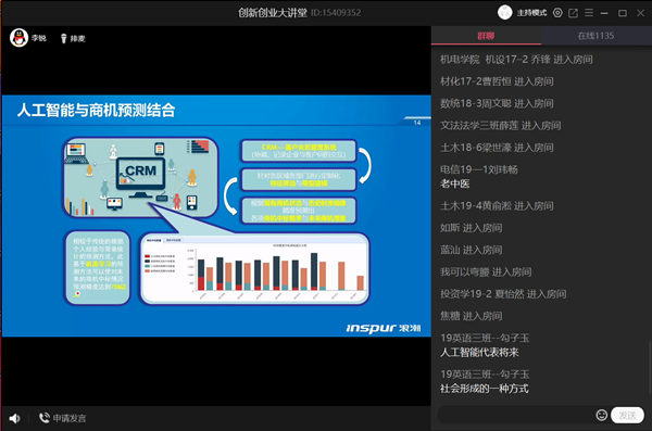 返回5月15日下午,bwin·必赢(中国区)官方网站-officialswebsi2020年第3期线上创新创业大讲堂暨机电学院校友论坛成功举办,我校05届杰出校友、山东省泰山产业领军人才、浪潮人工智能研究院首席人工智能专家李锐应邀来我校作《如何学好用好人工智能——案例、技术与趋势》专题报告,来自全校各学院共1100余名同学通过QQ群课堂参加了报告会。报告会由机电学院团委书记樊玉华主持。