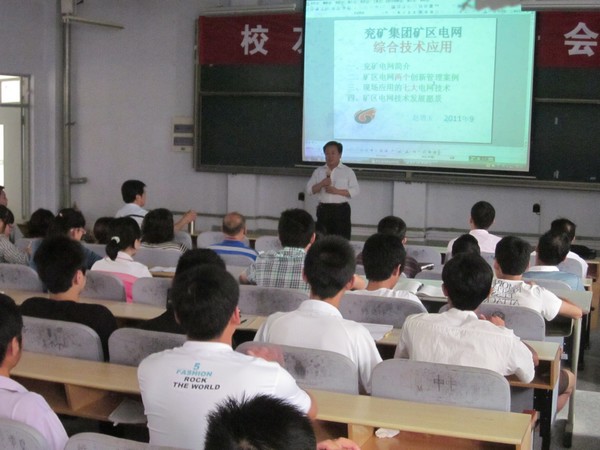 9月8日,校友、兖矿集团有限公司副总经理赵增玉为信电学院师生作了题为“兖矿集团矿区电网综合技术应用”的报告,学院教师、研究生、本科生共160余人参加报告会。报告会由信电学院院长曹茂永主持。 赵增玉从“兖矿电网简介”、“矿区电网两个创新管理案例”、“现场应用的七大电网技术”、“矿区电网技术发展愿景”四个方面进行了详细介绍,强调了电网的安全与稳定对矿区的重要意义,并就电网安全问题举了若干切合实际的例子和切实有效的解决方案。赵增玉指出,电网的安全与稳定是矿区生产和矿区员工生命安全的根本保证,合理并有效地利用相关电网技术是确保矿区经济稳定发展和员工生命安全的重要策略。 赵增玉言简意赅地剖析了电网技术在矿区的各种应用实例并对学生们提出关于矿区生产和煤矿企业人才招聘的问题进行一一解答。 报告会加深了同学们对矿区电网技术应用的了解,深化了对自己所学知识和技术的理解与掌握,对明确今后的学习及工作目标具有很大帮助。