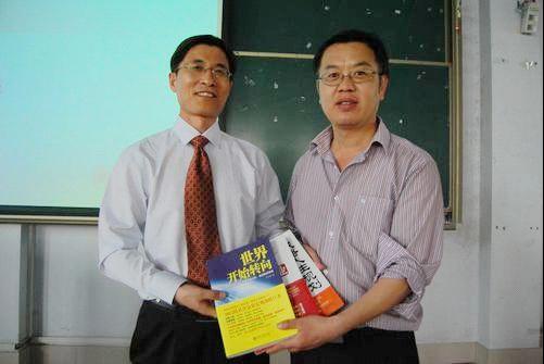 返回报告会上,岳教授向信息学院捐赠了新出版的《世界开始转向》等三本书,并从人生发展、知识发展、心智发展等几个方面结合自己的成功经验与同学进行了交流。报告内容丰富,精彩幽默,现场气氛热烈,掌声不断。岳教授认为,人生是有限的,又充满局限的。但我们可以通过教育来实现人生的发展,这需要确立人的使命和理想。每一个人都应有远大的理想和抱负,拥有自己的精神力量,学会战略地审视人生。同时发展自己的特长,进行人生的定位,学会用一生来衡量自己的处事方式。他说,人的所遇所求,都在引着生命的方向;人的一思一想,都在创造自己的未来。因此坚定自己的信念,克服各种不确定性,主动地学习知识,培养成熟的心智是十分必要的。最后,岳教授与在场同学进行互动活动,现场同学踊跃提问,岳教授认真、仔细地回答了同学们的问题。讲座使同学们更深刻地认识到认真看待人生、发展人生的重要性,为今后如何生活、学习提供了很多有益的帮助。 岳川博,原名岳喜敬,是我院数学专业85级毕业生,著名管理专家,现任《北大商业评论》副主编,北京财富时代管理咨询公司首席专家,中国幸福企业研究咨询中心主任,担任多家大型企业集团管理顾问,曾以满分的面试成绩考入北京大学光华管理学院,为全国各高校考生之冠。是中国企业文化研究咨询领域的代表性人物,对企业文化研究有开创性思想贡献。也是中国管理咨询界最具思想力和解决现实问题能力的、中国管理培训与教育培训领域最具影响力的专家之一。主要著作:《MBA之路》、《新竞争优势》、《战略人生规划》、《世界开始转向》等。