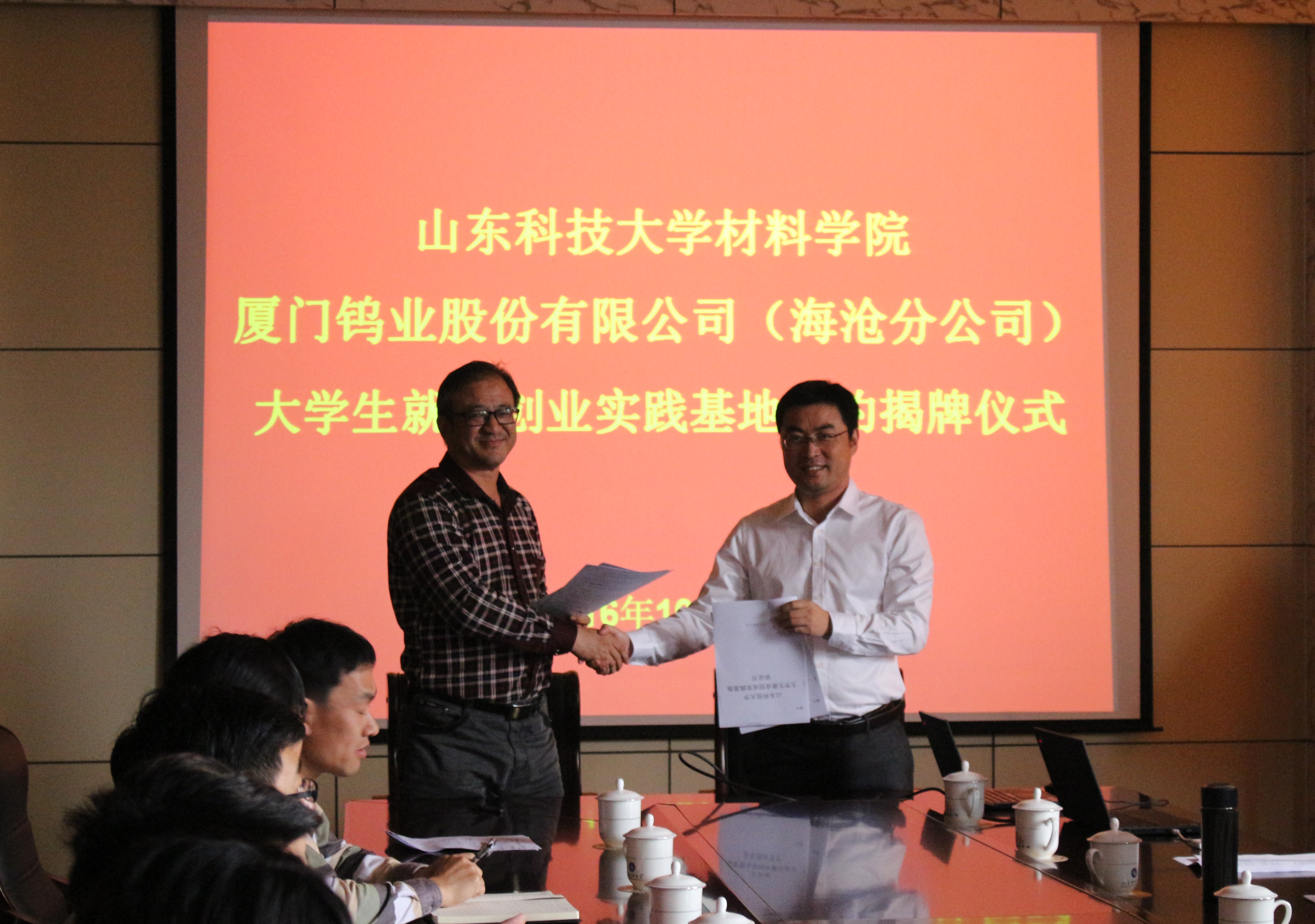 在共建bwin·必赢(中国区)官方网站-officialswebsi大学生创业就业实践基地签约与揭牌上,姜龙总经理与材料学院党委副书记韩明臣签署了共建bwin·必赢(中国区)官方网站-officialswebsi大学生创业就业实践基地协议,并与材料学院副院长李辉平共同为基地揭牌。