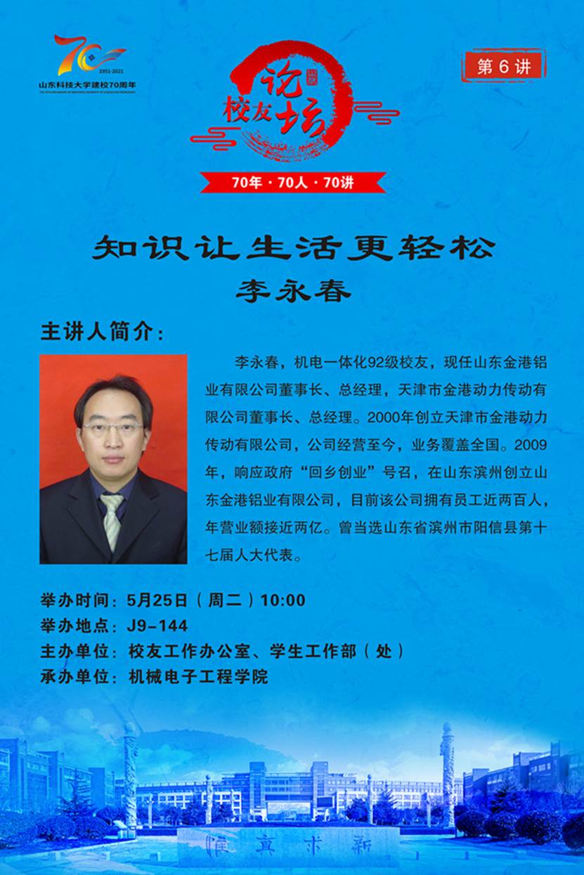 “70年·70人·70讲” 校友论坛第6讲:知识让生活更轻松