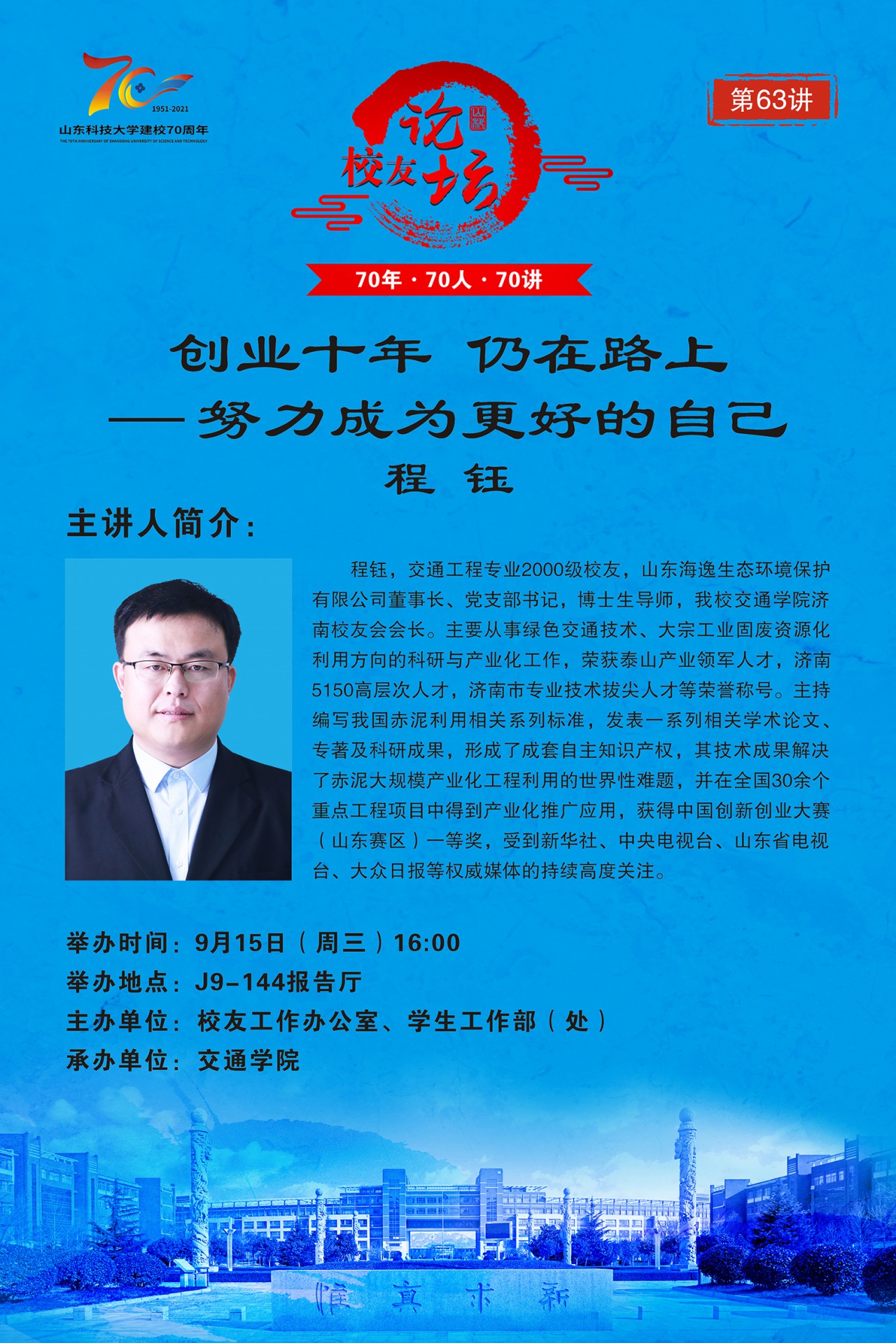 “70年·70人·70讲”校友论坛第63讲:创业十年 仍在路上——努力成为更好的自己