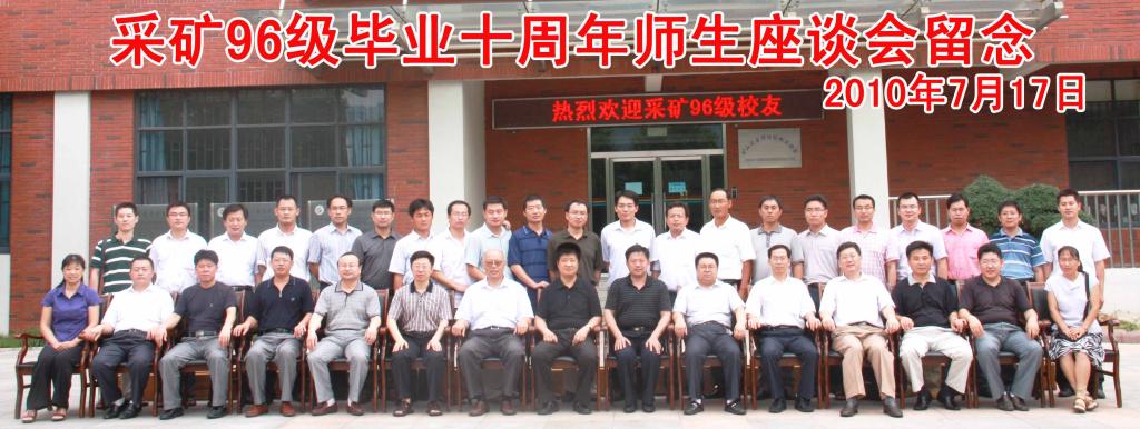 会上,郭惟嘉对校友重返母校表示热烈的欢迎,并对学校及学院近年来的发展情况作了介绍。他感谢校友长期以来对学校及学院的关心与支持,并希望校友们能结合十年实践经验对学院发展提出宝贵建议和意见。随后,王同旭教授代表教师发言,他肯定了96级同学十年来在煤炭行业所取得的成绩,并希望同学们能将此次聚会作为加油站,在今后会有更大发展。最后,校友代表李小平向领导、老师汇报了同学们的工作、生活情况,感谢学校、老师的辛勤培育,并对母校表达了美好祝愿。(校友办)