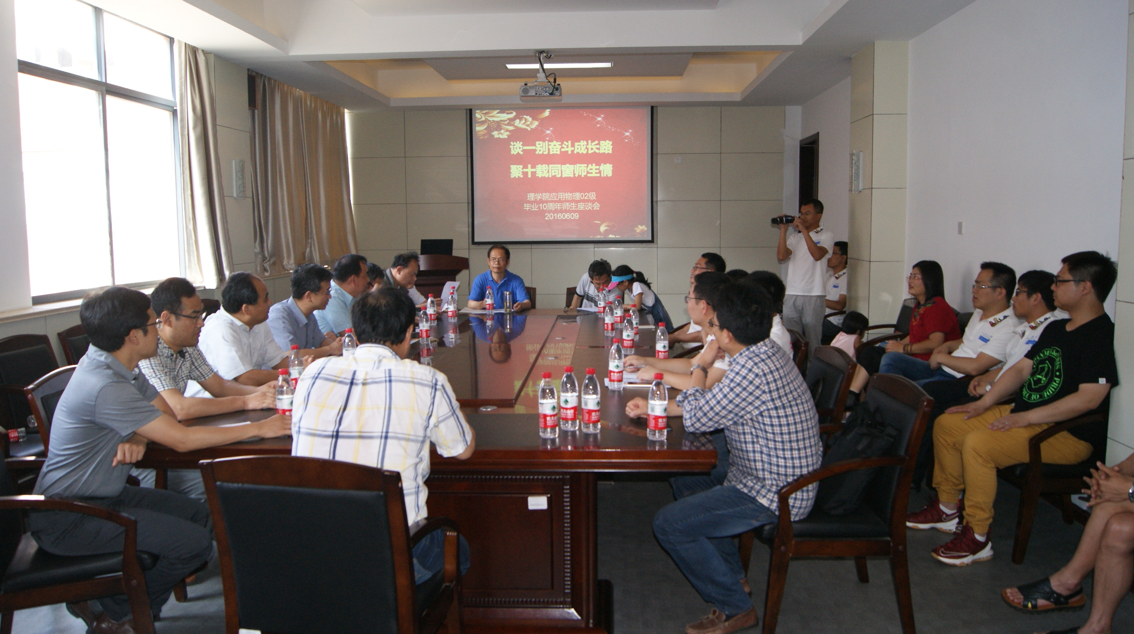 6月9日至11日,值端午佳节之际,电子学院应用物理学、生物医学工程2002级校友先后返校举办毕业十周年聚会。原理学院院长王世范、文法学院兼马克思主义学院党委书记徐玲平、化工学院党委副书记窦存增、校党政办公室副主任庄兴华、电子学院院长曾庆田、副书记聂西文和当年任课教师、辅导员分别出席校友座谈会。